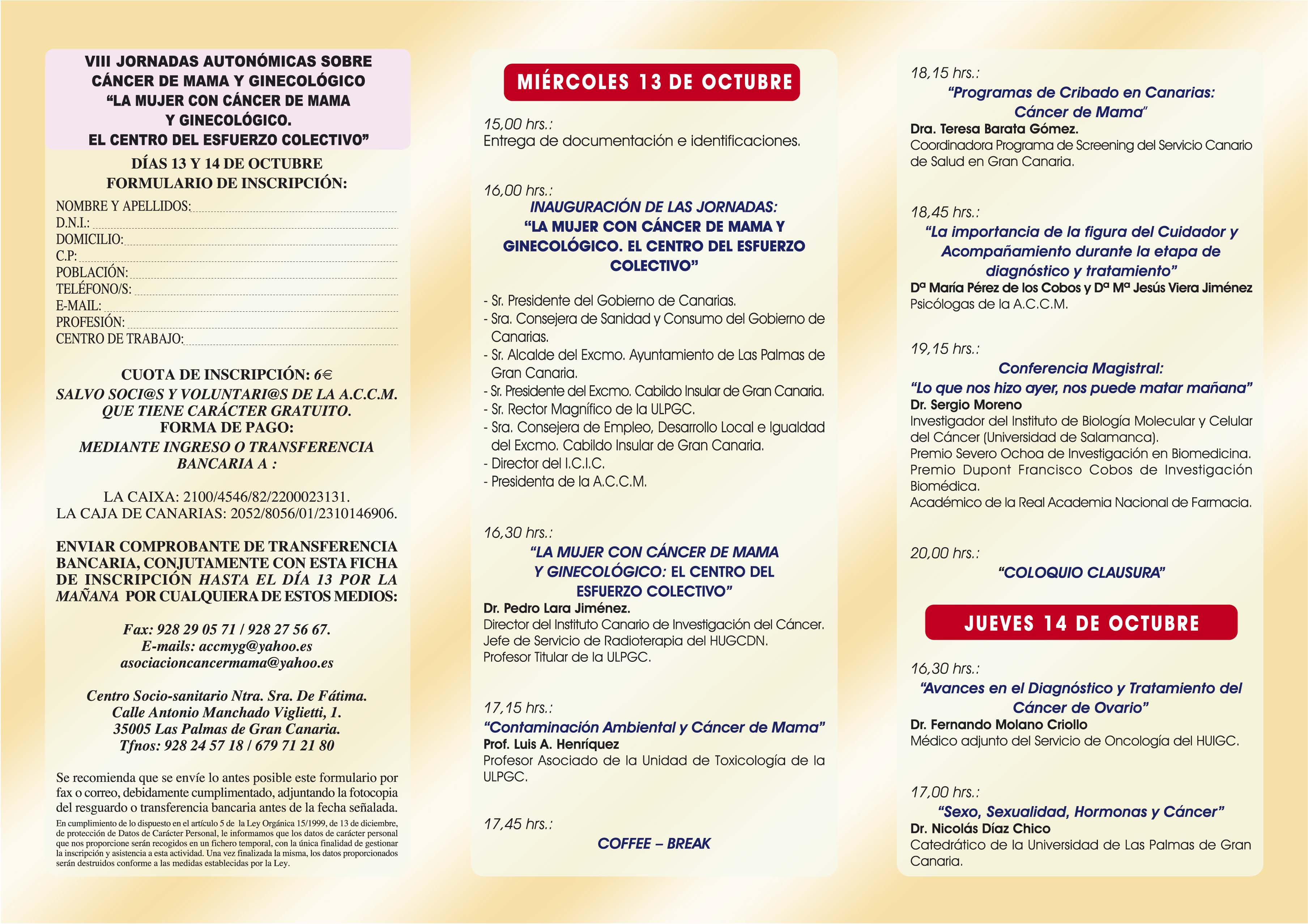 Eventos y Actividades del ICIC Eventos y Actividades del ICICAsociación Canaria de Cáncer de Mama y Ginecológico.VIII Jornadas Autonómicas de la Asociación de Cáncer de Mama y Ginecológico